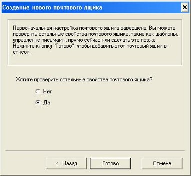 6. На вопрос "Хотите проверить остальные свойства почтового ящика?" отвечайте утердительно (кнопка Да).