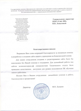 Выражаем Вам слова искренней благодарности за оказанную помощь в разработке и создании сайта нашего учреждения на безвозмездной основе.