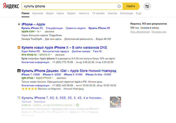 - В результатах поиска Яндекса