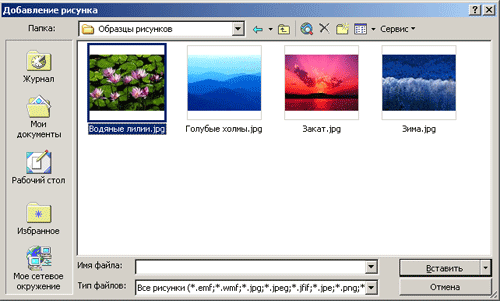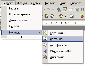 2. Заходим в выпадающем меню "Вставка" >"Рисунок" > "Из файла"