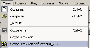 5. Заходим в выпадающем меню "Файл" >"Сохранить как вэб-страницу"