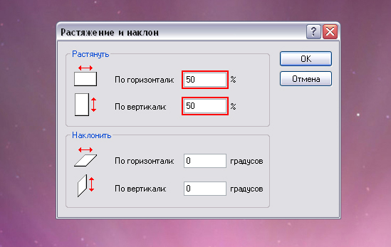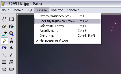 В меню выбираем "Рисунок" -> "Растянуть/наклонить".